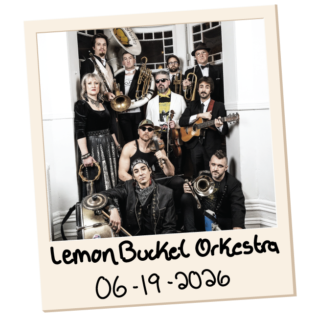 Lemon Bucket Orkestra are Toronto’s original guerrilla-folk-party-punks. The award-winning crew has been called frenetic, charismatic, and gloriously anarchic by the New York Times, The Guardian, the Winnipeg Free Press and media across the globe and over the past 14 years have performed all over the world from WOMAD in England and New Zealand and Pohoda in Slovakia, Festival D’Été in Québec City to New Orleans Jazz Fest in Louisiana.